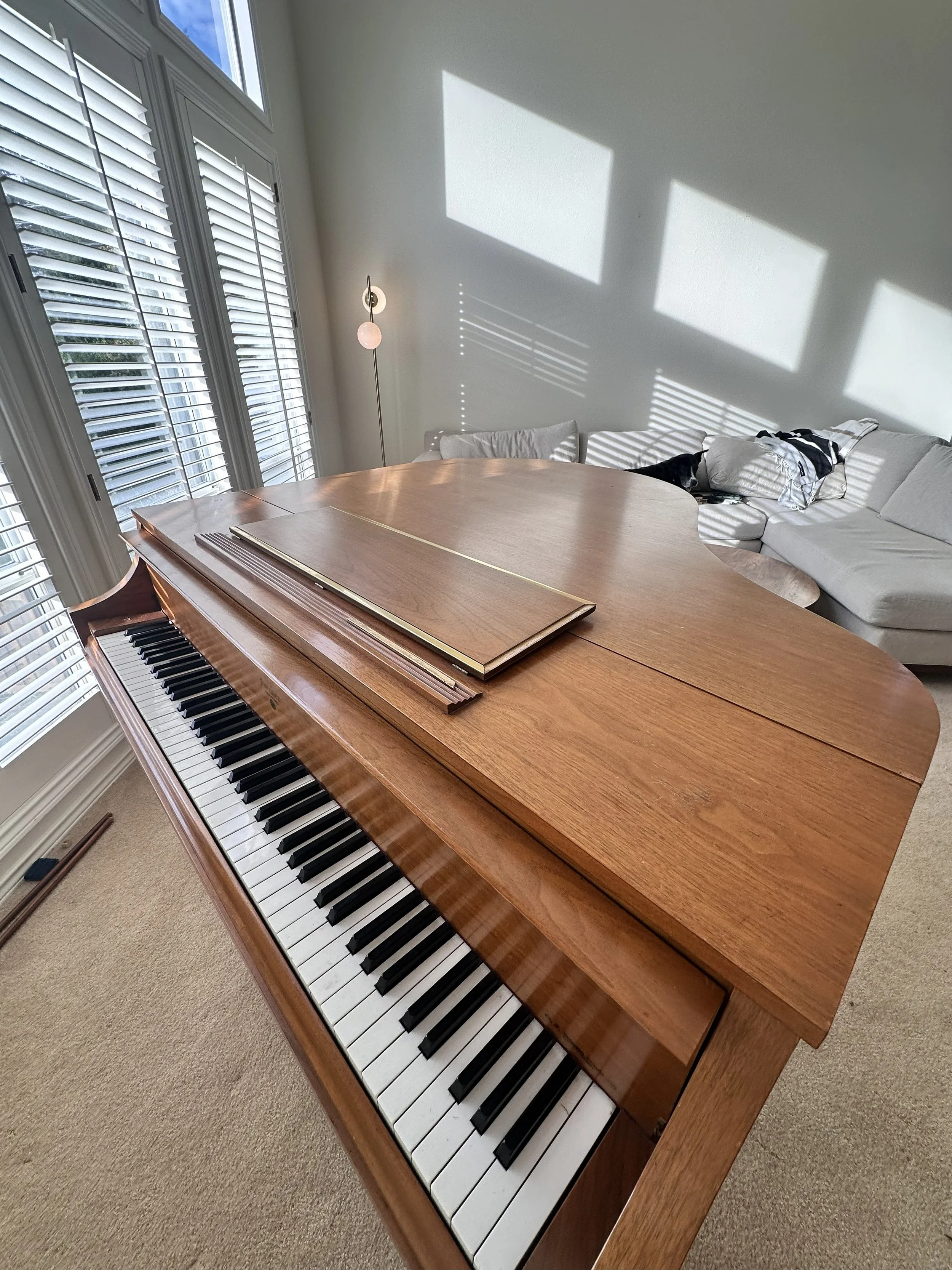 In the midst of this mele, I had an unrelated sale that closed just around the corner in Hillsdale (SW Portland). I was representing the buyer; the seller was moving out of his boyhood home with a lot of emotions and stuff as you might imagine. One item that the new owners did not want was a baby grand piano. What to do with it? My client didn’t care EXCEPT they wanted it out of the house before moving in. Believe it or not, two days later, while standing the grand living room of her purchase, DJ said “This would be a great spot for a piano. If we had one”. Do you want one? I said. I made the arrangements with the parties in the other transaction, and we had a plan to move it into storage until DJ’s sales were closed. Simple, right?